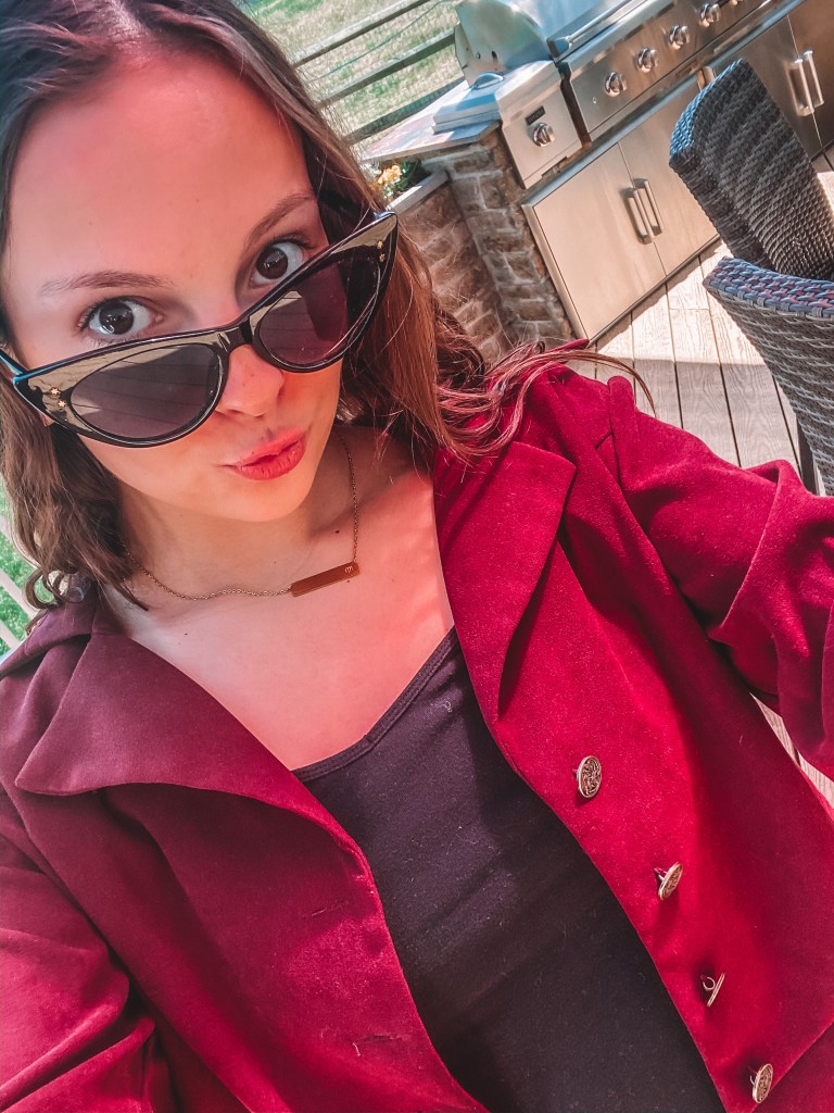 I won’t lie I felt pretty sophisticated in this blazer…the sunglasses helped too, but I will say I am definitely here for this business casual look. I could pair this black tank/red blazer with so many bottoms that the possibilities for putting together outfits is endless. The best part about this trend is you can find blazers just about anywhere- from a high end store to a thrift shop. I picked up gem up from a local goodwill and you wouldn’t even know that it was secondhand.