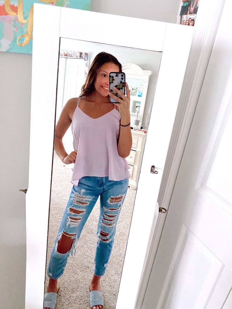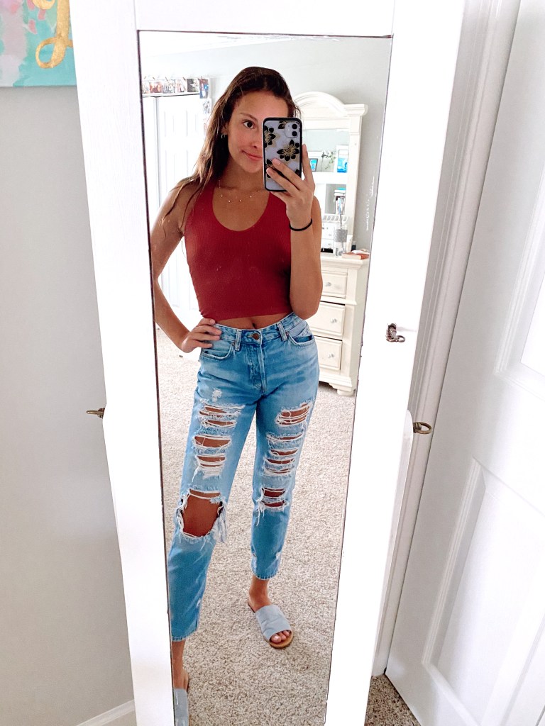 A classic! Jeans and a tank, seriously it sounds basic but you can’t go wrong. My go-to stores for jeans are H&M, American Eagle, and Old Navy. However, I’m trying to branch out this summer and try some new stores and unique pairs of jeans that aren’t your basic ripped mom jeans (pictured) – even though they’re amazing! From left to right in pictures- I shop for my tanks at Forever 21 (fun and cheap tanks), Francesca’s (pricier but great quality), and Forever 21 (fun and cheap tanks), and Urban Outfitters (great for basic tanks).