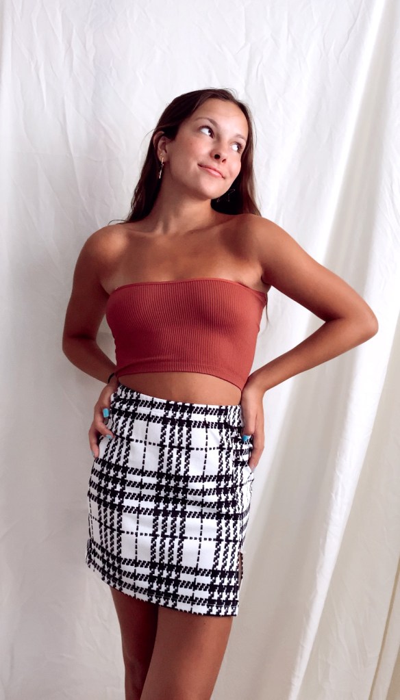 For the next look, I wanted to adjust the the top to make a one shoulder crop top. I was about to order a top that looked just like this but then I realized it’s as simple as changing your perspective of the halter top and turning it to the side that creates the same look.