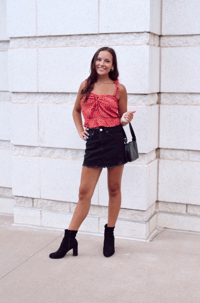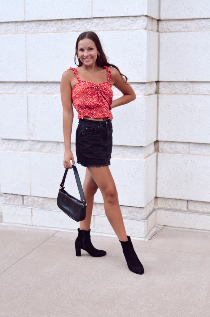 This one might be a classic, but I always love how red and black looks turn out. Black monochrome looks have also been a fav of mine so this red top from Express adds the perfect pop of color. If you’re looking for a dressed down style with this color combo, I would suggest some distressed black jeans and a red t-shirt, and to dress it up, a little black dress and some red heels. That pop of red always adds so much more than you think and that’s why I love this color combination.