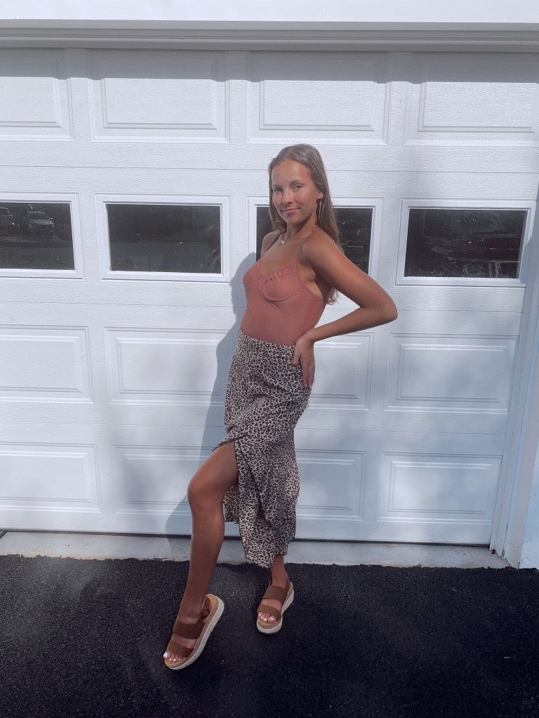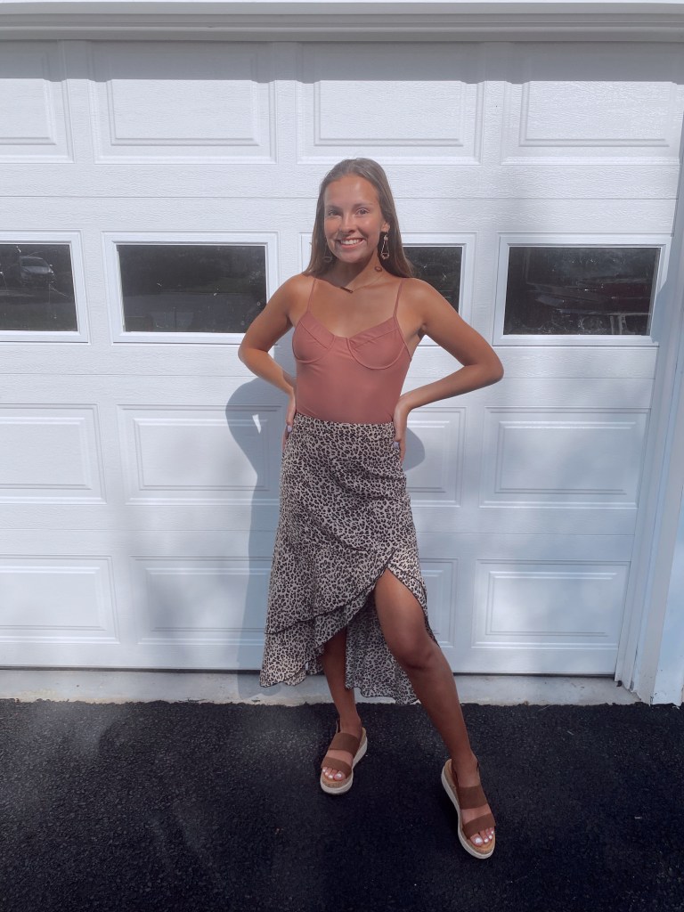 This last outfit is a good mix of both laid-back and posh, honestly this is probably something I would wear to a beachy restaurant. The skirt adds to the fancier side while the espadrilles sandals tone it down a little bit. This look is great for a night out because the body suit is perfect for parties (even if you substitute the skirt for a good pair of jeans). I paired statement earrings to give the outfit a little more spice but I made sure to balance it out with a dainty everyday necklace.