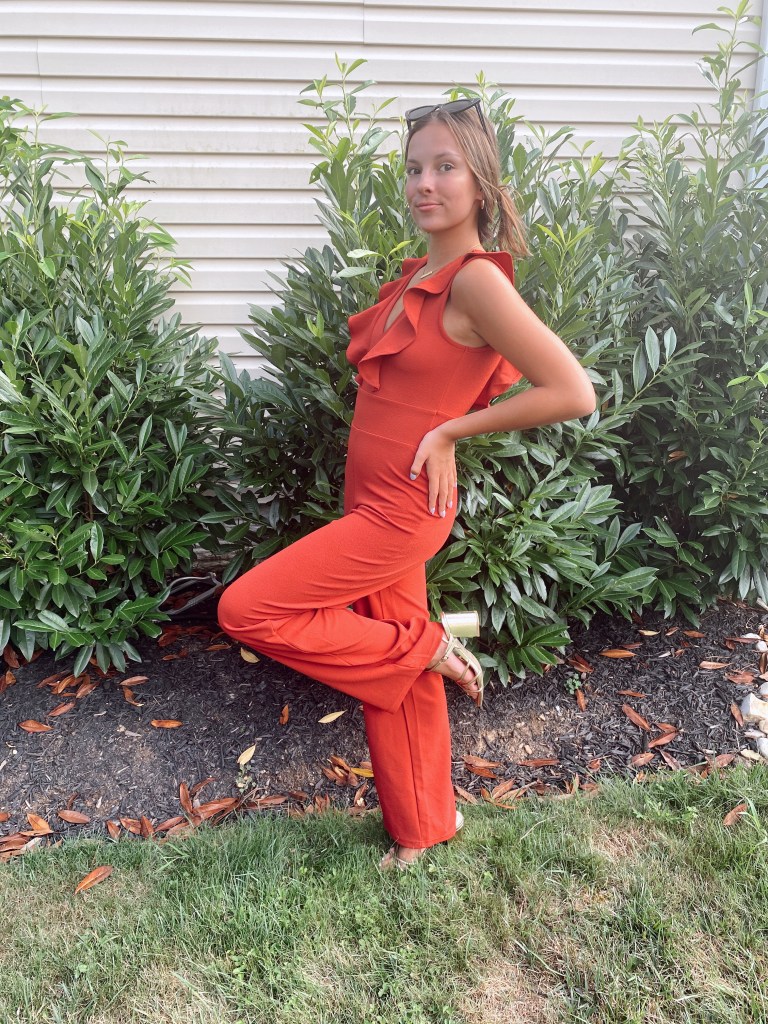 If you’re attending a lavish party or a fancier restaurant this is the look for you. I’m obsessed with jumpsuits so I think they’re perfect for more elegant events. You could also substitute a jumpsuit for a cocktail dress or little black romper that you can accessorize accordingly. For my look, I paired gold block heels and very minimalistic gold jewelry (small hoops and a dainty necklace) to make sure the accessories weren’t too overwhelming.