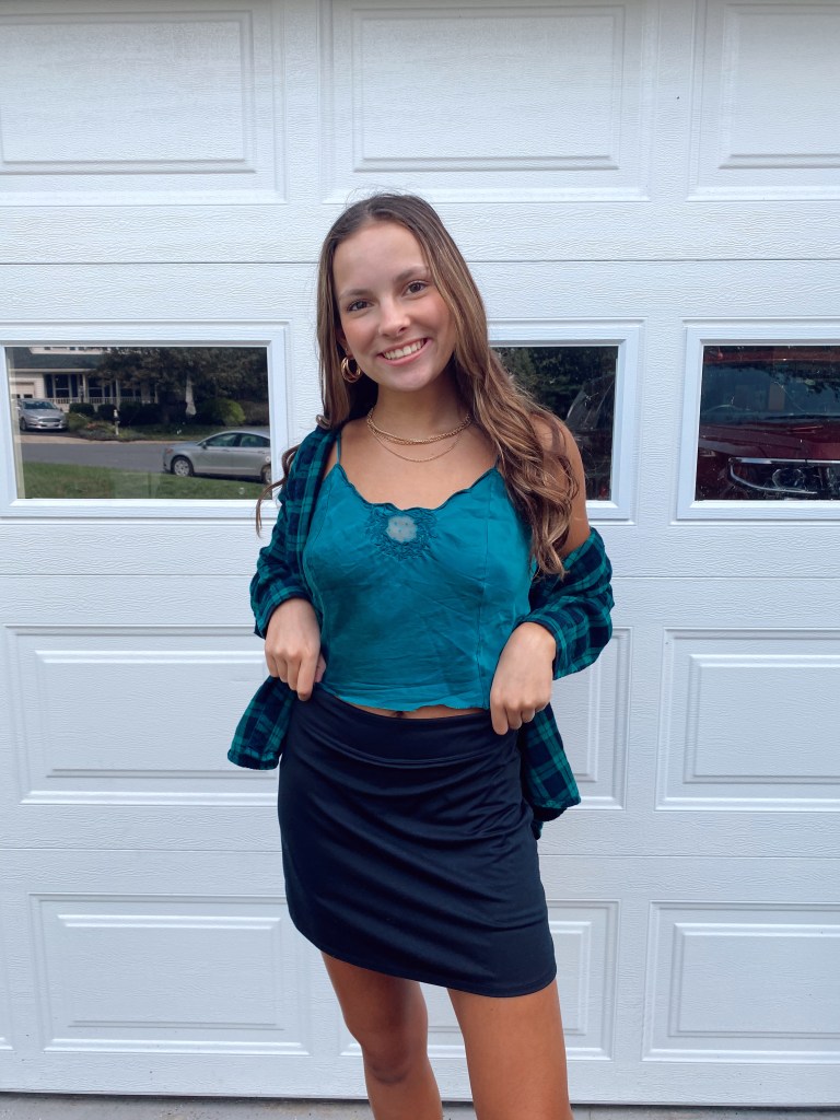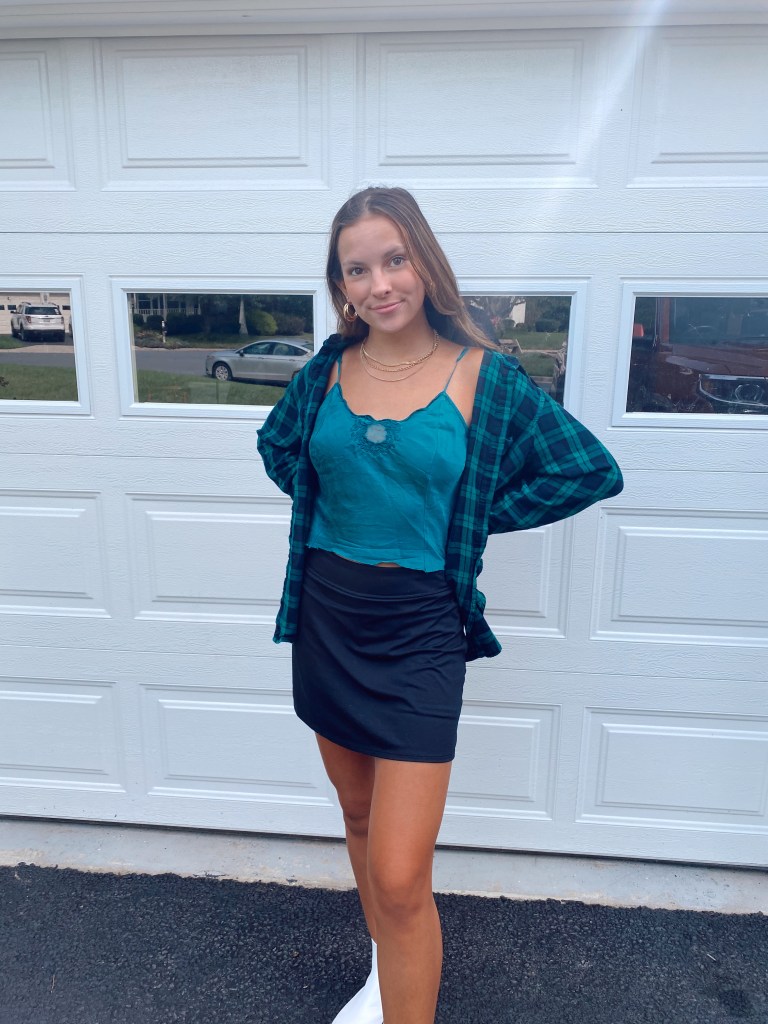 You’ve all probably seen the most popular ways to style a tennis skirt, but what about an edgier way? As most of you know, I really like edgy looks and I wasn’t sure how to add that factor into my fall looks. So, I decided to pair the black tennis skirt with a silk tank and a matching flannel to add a bit of fall fashion. Layering is perfect for transition outfits because you can take off/add layers based on the weather.