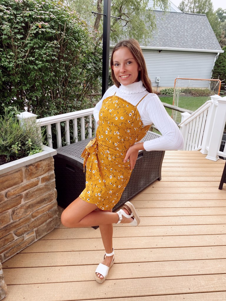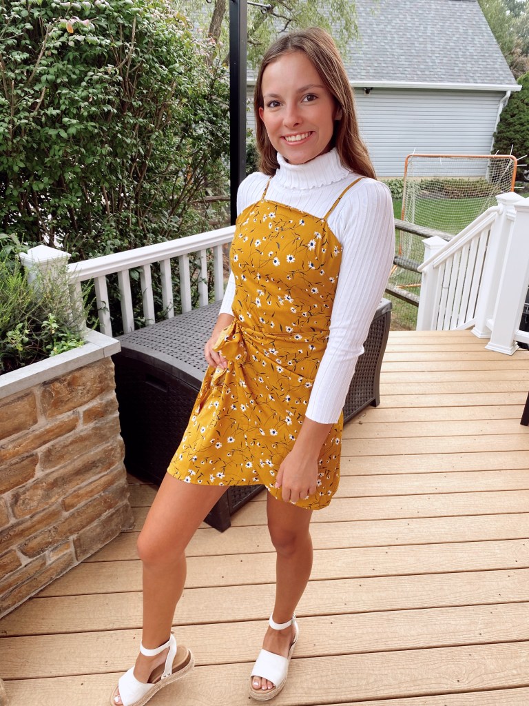 I adore turtlenecks, especially in the fall. I think they are a perfect way to layer but also a great statement piece. Even with a summery pattered dress, they still add that hint of fall that September is all about. I’d say we are all still transitioning from summer to fall trends so this is a great transition outfit.