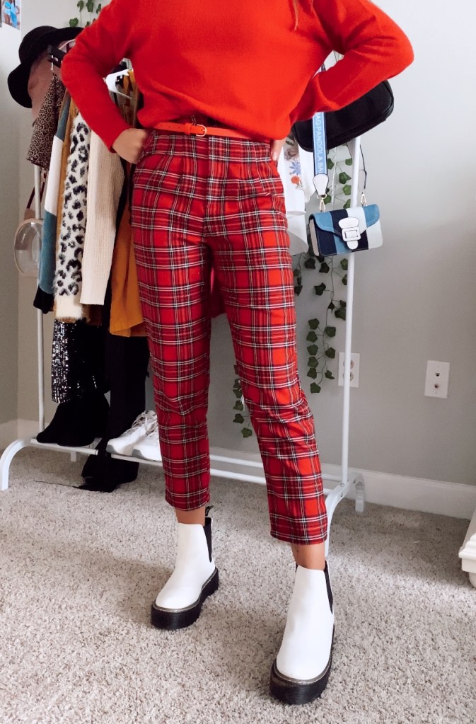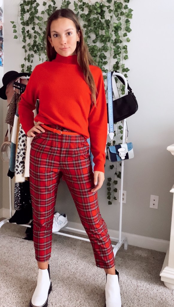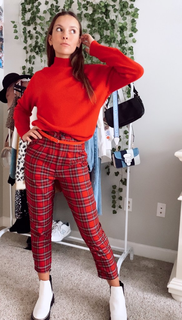 I didn’t want to overwhelm this outfit with more red, but when I added this red turtleneck and belt, it went really well with the pants. This outfit screams fall and I couldn’t love it more!