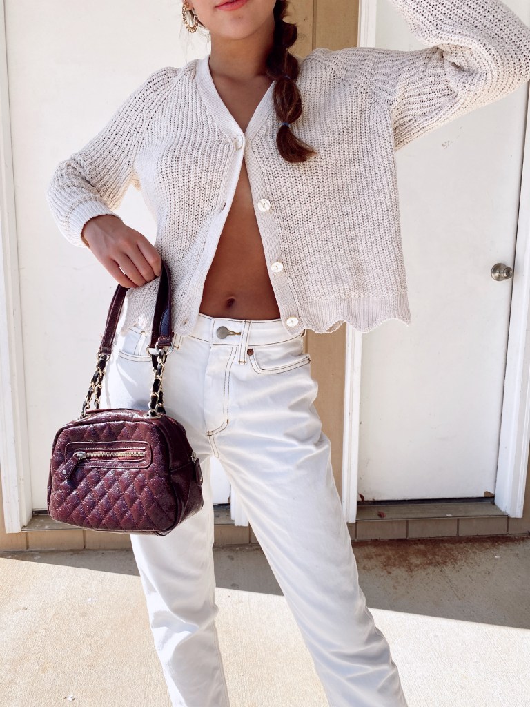 The last sweater I will be sharing is one of the most popular looks on my blog yet, and I’d have to agree, this was one of my favorite outfits ever. I loved how the cream colors looked together and the back added that needed pop of color. I wanted to try out the one button trend and I was obsessed, yes it is a little risky lol, but I think I pulled it off. I believe button down sweaters are a fall closet essential because they are very versatile. You can wear it as a regular sweater, you can unbutton it to wear it as a cardigan or like me, wear it with one button to try out this trend.