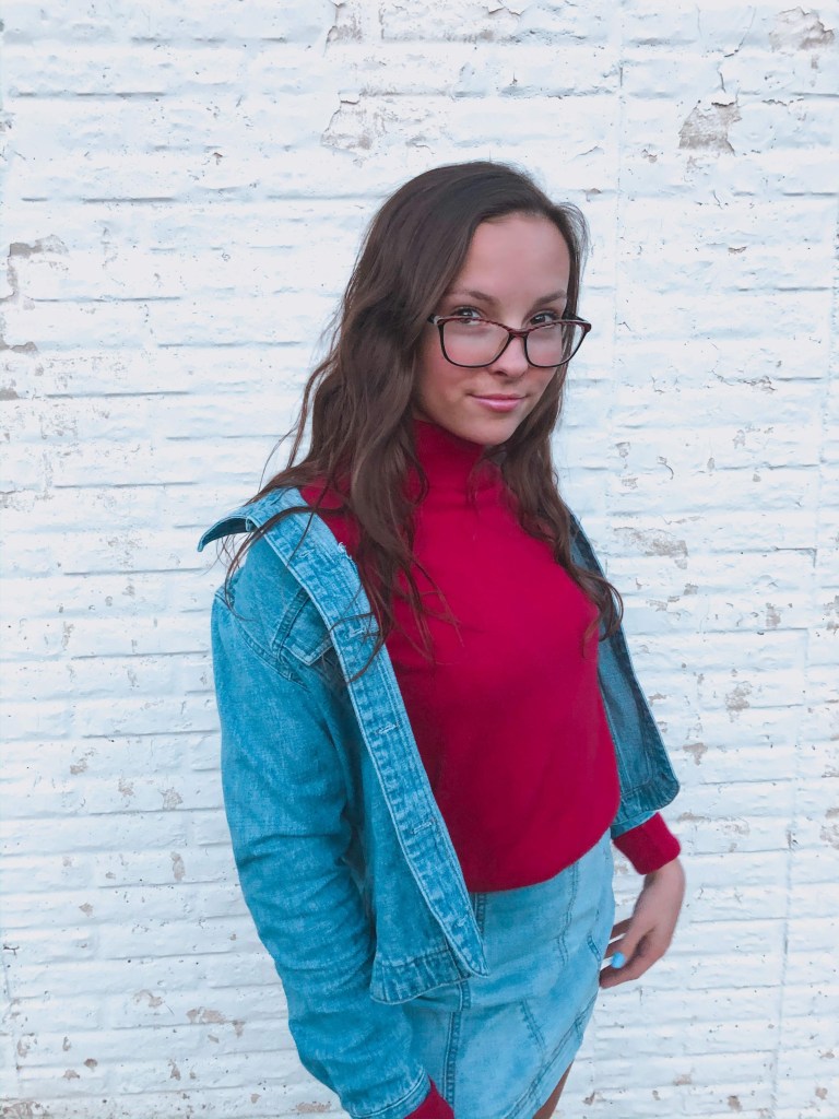 Alright granted, this is considered a “mock neck” but I’m still going to include it in this category because if you aren’t really feeling turtlenecks but want to experiment outside your comfort zone, this is the perfect way to start, with a mock neck. With this bright red sweater being the first thing that catches your eye, I wanted to keep that spotlight on it so I paired a denim skirt and jacket with it.