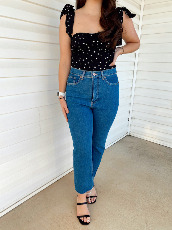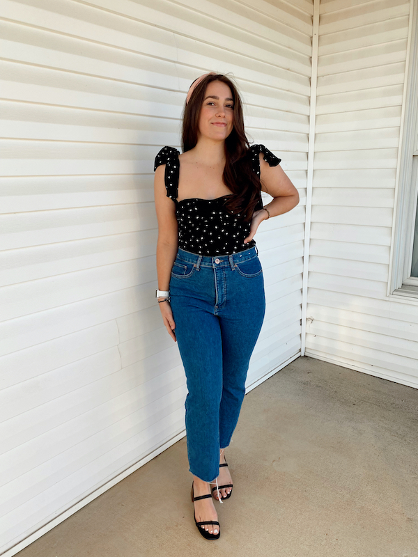 I didn’t want to forget my single friends, so I included a solo look for both Mara and Maverick. For Mara’s we loved this black top that has little hearts on it. We paired it with some denim, added some black sandals, and finished with a pink, Blair Waldorf-esque headband. I love the simplicity of this outfit, it is so clean yet so adorable. Perfect for all of the Galentine’s Day festivities.
